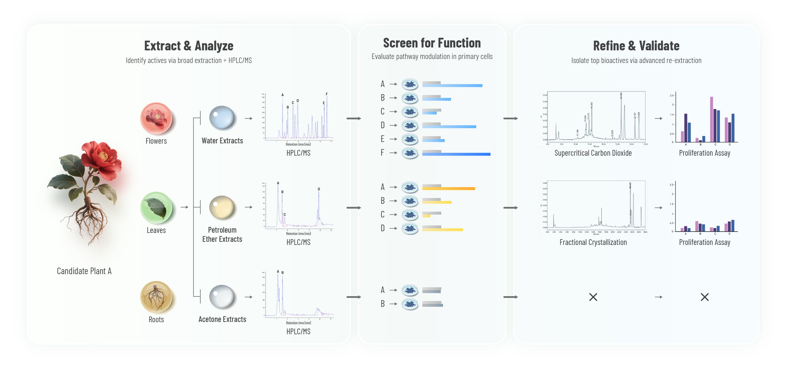 Our Acesvia™ platform screens natural compounds directly on human cell models to see what actually works before we ever consider a formula.